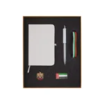 Description: The entire gift set comes beautifully packaged in a sturdy cardboard box, making it an ideal gift for friends, family, or colleagues. Its thoughtful presentation reflects the significance of UAE Day and fosters a sense of unity and pride.