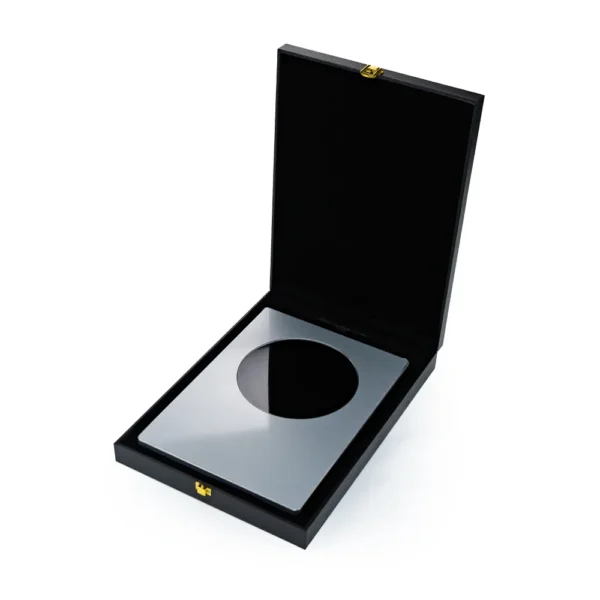 - Packaging: Vertical opening black fiber board box with gold lock closure