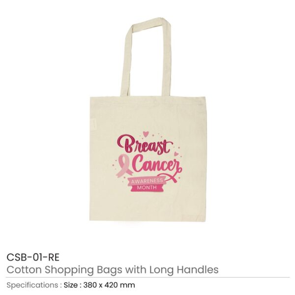 The bags are designed with the iconic pink ribbon logo, a powerful symbol of breast cancer awareness, and come in a variety of sizes to suit your needs. The soft, yet sturdy cotton fabric ensures that these bags are both practical and comfortable to carry. With reinforced handles and a spacious interior, they are built to handle your daily essentials with ease.