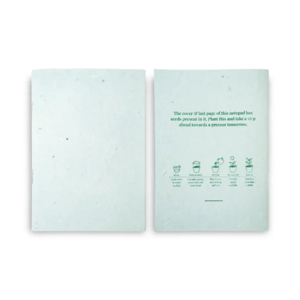 - The front and back covers of the notepad contain seeds and can be planted in any pot or in soil.